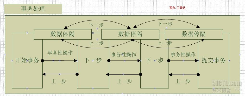 什么叫可逆的?程序的执行是可以被无限制回滚的。 什么叫可逆的框架?实现了对可逆功能的封装,并能通过简单的接口调用进行使用。框架可能有大有小,我想这么称呼它是为了表达它的整体性和重要性。 那么到底可逆的需求在哪里?其实在我们开发程序的时候经常会使用事务来进行业务的控制。比如删除订单,然后删除订单明细等等,对于这样的要求很多,我们只能将逻辑控制在一个事务范围内,不能在没有事务性的逻辑代码中编写这种要求的业务功能。等出现未知错误的时候在进行事务的回滚。[王清培版权所有,转载请给出署名] 你也许会问,使用原来的事务处理不是也能进行回滚吗?当然不是这么简单的,我们使用事务回滚时只能将资源回滚到最初未进行事务处理前的状态。(这里不仅仅指的是数据库事务,而是全局的事务处理) 我们用图做个比较。 传统的事务处理图: 可逆的事务处理图:从这两幅图中我们可以很明显的看出,传统的事务处理在事务处理的过程当中无法控制中间数据,也就是说无法对事务处理进行分段,然后在进行统一的提交或回滚。[王清培版权所有,转载请给出署名]