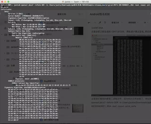 openssl pkcs7 -inform DER -in /Users/jackie/Downloads/apk签名机制/SMSSDKSample-release_new/original/META-INF/DEMOKEY_.RSA -text -noout -print_certs