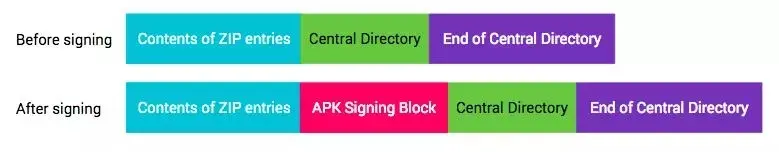 为什么谷歌要做这个事情呢?第一点毋庸置疑,肯定是处于安全性的考虑,之前的校验方式开发者可以在打包之后对apk做很多处理,第二为了性能考虑,安装校验的时候不需要再解压缩校验,从而提升安装速度。