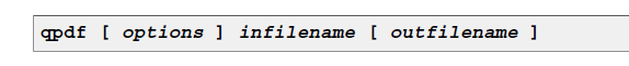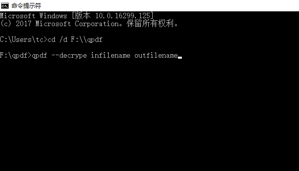 因此,在转到qpdf的安装目录下,你只需要在命令行终端收入一下命令: