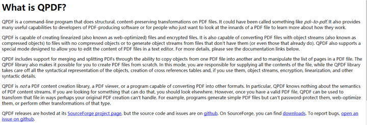 以上是官网对于QPDF介绍。简言之,qpdf是一款可以移除密码的在命令行终端操作的软件。