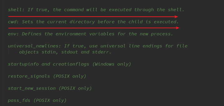 close_fds: Controls closing or inheriting of file descriptors.