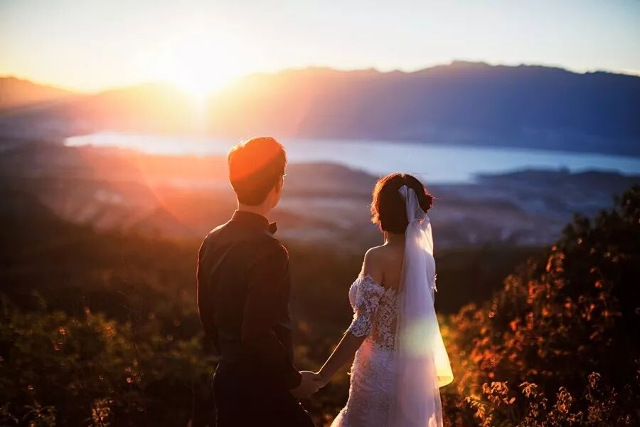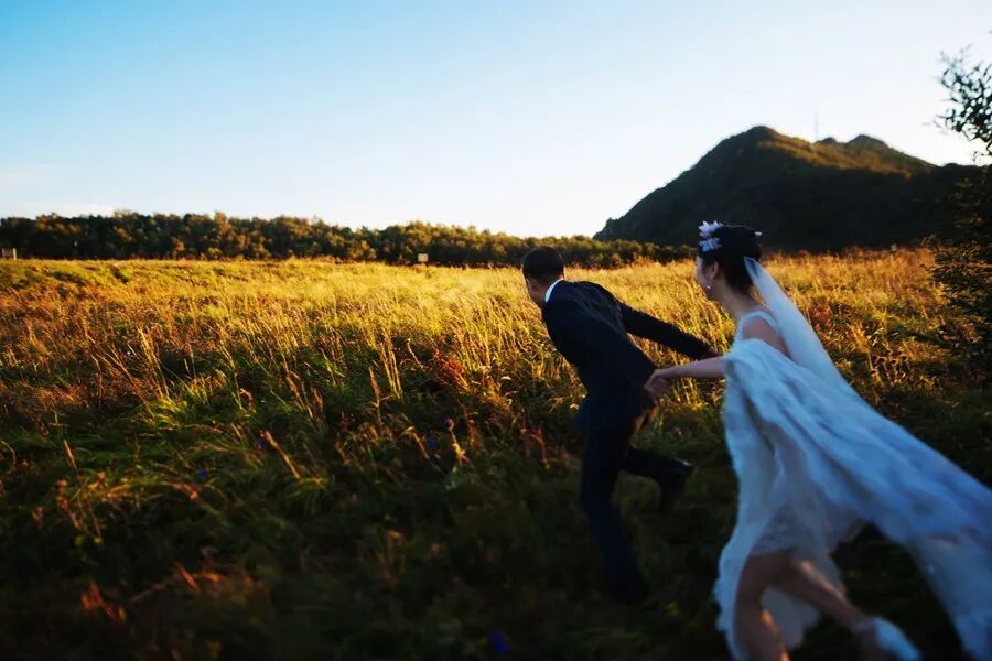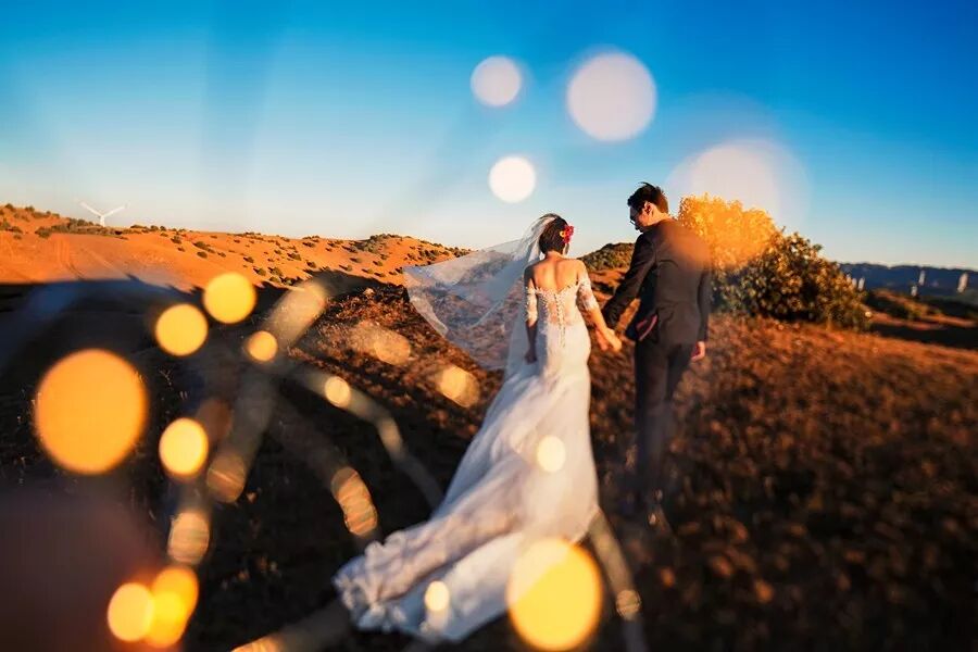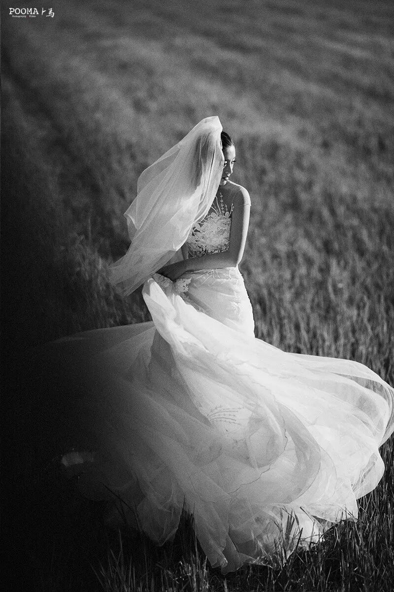 最后时分的夕阳逆光,我尝试了很多角度来表现新娘,最后选择了这张剪影,有细节、有轮廓,光影极具味道,凝练而精准地表现出女性的柔美,带给人如梦一样的想象空间。