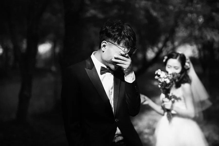 新郎就是我们工作室的摄影师,所以整个拍摄的过程十分轻松,很容易捕捉到自然的情绪。这是在聊天讲笑话的时候抓拍的。“笑出眼泪”不一定非要拍到眼泪,画面要传达的是情绪,而不是抛出直白的元素。