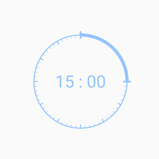 public class CountdownView extends View { // 控件宽 private int width; // 控件高 private int height; // 刻度盘半径 private int dialRadius; // 小时刻度高 private float hourScaleHeight = dp2px(6); // 分钟刻度高 private float minuteScaleHeight = dp2px(4); // 定时进度条宽 private float arcWidth = dp2px(6); // 时间-分 private int time = 0; // 刻度盘画笔 private Paint dialPaint; // 时间画笔 private Paint timePaint; // 是否移动 private boolean isMove; // 当前旋转的角度 private float rotateAngle; // 当前的角度 private float currentAngle; // 时间改变监听 private OnCountdownListener onCountdownListener; public CountdownView(Context context) { this(context, null); } public CountdownView(Context context, AttributeSet attrs) { this(context, attrs, 0); } public CountdownView(Context context, AttributeSet attrs, int defStyleAttr) { super(context, attrs, defStyleAttr); init(); } private void init() { // 刻度盘画笔 dialPaint = new Paint(); dialPaint.setAntiAlias(true); dialPaint.setColor(Color.parseColor("#94C5FF")); dialPaint.setStyle(Paint.Style.STROKE); dialPaint.setStrokeCap(Paint.Cap.ROUND); // 时间画笔 timePaint = new Paint(); timePaint.setAntiAlias(true); timePaint.setColor(Color.parseColor("#94C5FF")); timePaint.setTextSize(sp2px(33)); timePaint.setStyle(Paint.Style.STROKE); } ...}