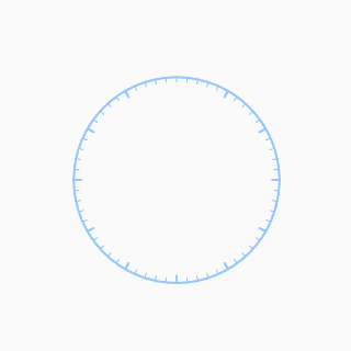 /** * 绘制刻度盘 * * @param canvas 画布 */private void drawDial(Canvas canvas) { // 绘制外层圆盘 dialPaint.setStrokeWidth(dp2px(2)); canvas.drawCircle(width / 2, height / 2, dialRadius, dialPaint); // 将坐标原点移到控件中心 canvas.translate(getWidth() / 2, getHeight() / 2); canvas.save(); // 绘制小时刻度 for (int i = 0; i < 12; i++) { // 定时时间为0时正常绘制小时刻度 // 小时刻度没有被定时进度条覆盖时正常绘制小时刻度 if (time == 0 || i > time / 5) { canvas.drawLine(0, -dialRadius, 0, -dialRadius + hourScaleHeight, dialPaint); } // 360 / 12 = 30; canvas.rotate(30); } // 绘制分钟刻度 dialPaint.setStrokeWidth(dp2px(1)); for (int i = 0; i < 60; i++) { // 小时刻度位置不绘制分钟刻度 // 分钟刻度没有被定时进度条覆盖时正常绘制分钟刻度 if (i % 5 != 0 && i > time) { canvas.drawLine(0, -dialRadius, 0, -dialRadius + minuteScaleHeight, dialPaint); } // 360 / 60 = 6; canvas.rotate(6); }}