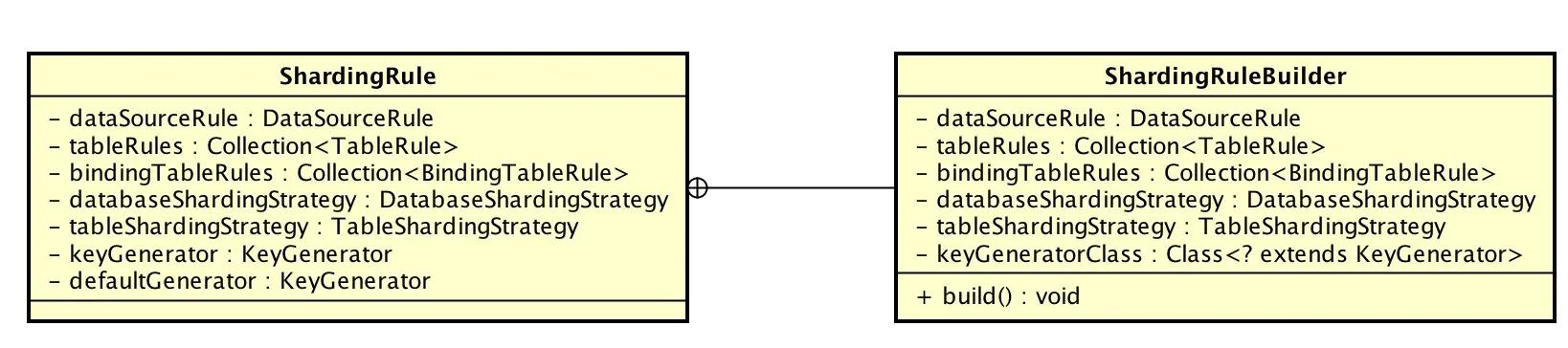 ShardingRule,分库分表规则配置对象,内嵌 ShardingRuleBuilder 对象进行创建。