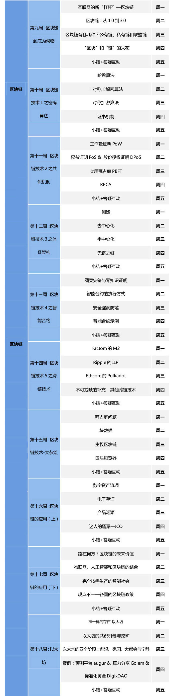 众享区块链大讲堂 - 299元全年区块链课程 - 全面掌握区块链 闫二风 2018-02-01 174 阅读1分钟 报名咨询:闫女士 ,13810575923 (微信/手机号) 报名成功后由工作人员添加微信,拉入微信学习群! 订阅方式1:关注众享比特公众号,点击付费课程->众享区块链大讲堂,订阅课程。 订阅方式2:在千聊APP/千聊公众号,搜索众享区块链大讲堂,订阅课程。 订阅方式3:通过活动行购买。 299元全年区块链系列课,每天十分钟,轻松学习区块链。