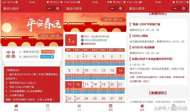 小程序简介:2018年春运火车票购票日历,春运抢票攻略技巧,春运售票时间查询。