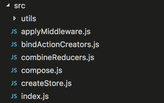 最近在看 redux 的源码,代码结构很简单,主要就是6个文件,其中 index.js 负责将剩余5个文件中定义的方法 export 出来,其他5个文件各自负责一个方法的实现。