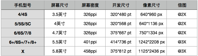 我们熟知的iPhone系列开发尺寸概要如下: