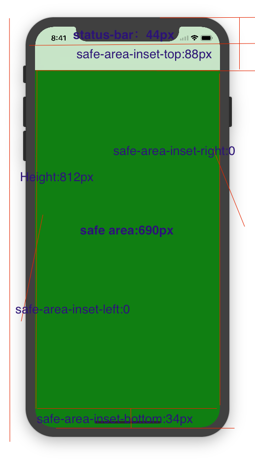 3.1当我们设置viewport-fit:contain,也就是默认的时候时;设置safe-area-inset-left, safe-area-inset-right, safe-area-inset-top和 safe-area-inset-bottom等参数时不起作用的。
