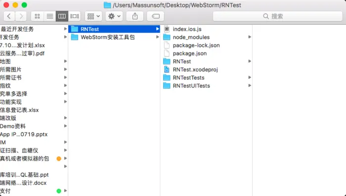 在RNtest文件夹里创建index.ios.js文件,作为js文件入口。