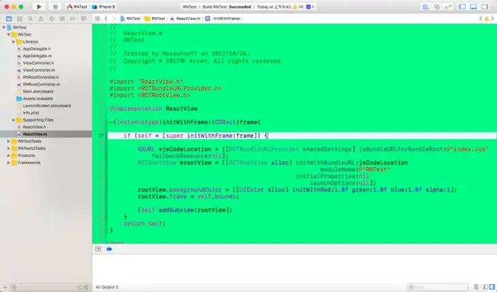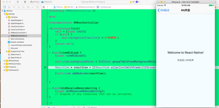 下面我们在原生ios应用中添加一个视图容器,用于展示react-native实现的内容。
