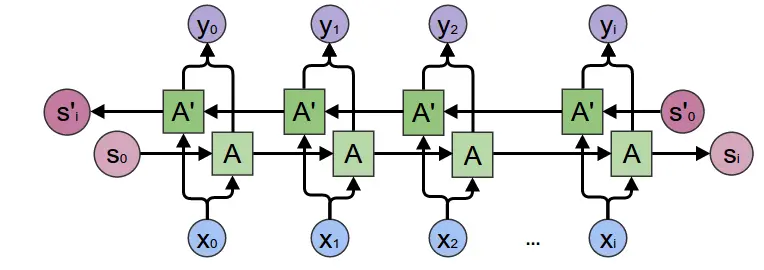 双向 RNN(BiRNN)是一种特殊的 RNN。标准 RNN 是通过「记忆」过去的数据来记忆历史语境,而 BiRNN 还会从反方向进行遍历以理解未来的语境: