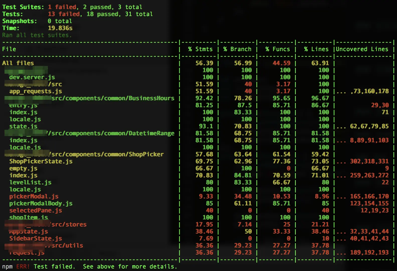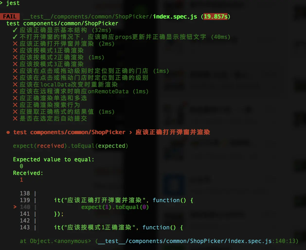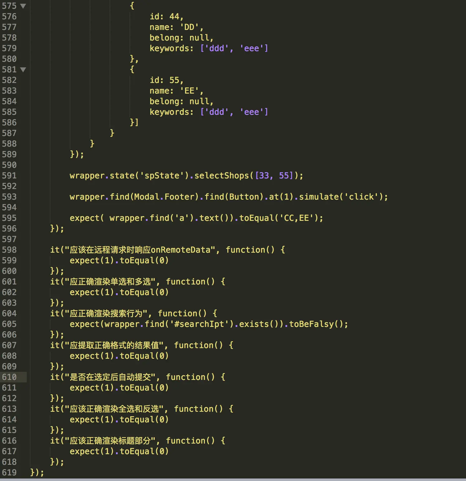 在这个简单的配置文件中,我们指定了测试的“根目录”,配置了覆盖率(内置的istanbul)的一些格式,并将原本在webpack中对样式文件的引用指向了一个空模块,从而跳过了这一对测试无伤大雅的环节