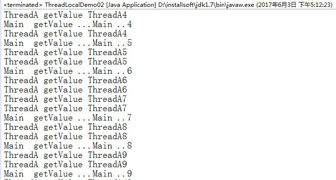 System.out.println("ThreadA getValue " + ThreadLocalDemo02.demo.get());