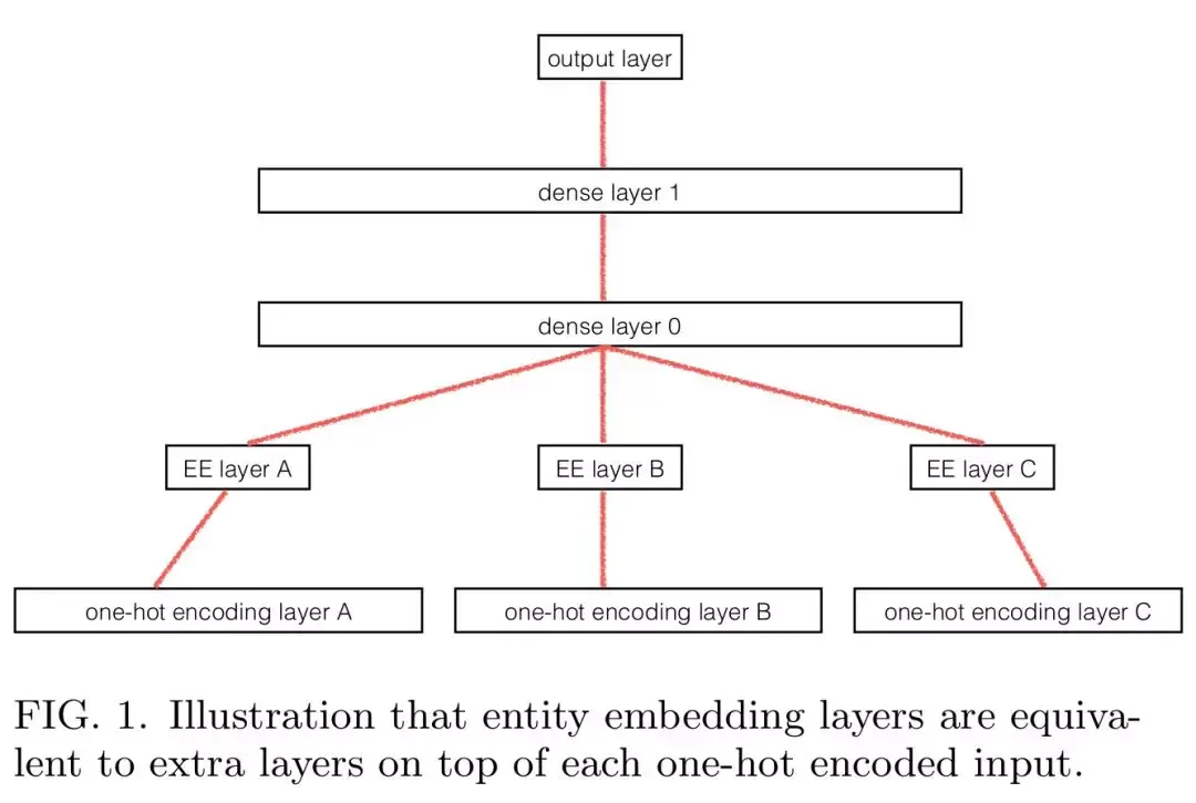 当对结构化的数据集进行深度学习时,该方法能将包含连续数据的列,例如在线商店中的价格信息,和分类数据的列,例如,日期和接送地点等,以此进行区分。然后,这些分类列的单热 (one-hot) 编码过程会被转换为指向神经网络全连接层的查找表。因此,神经网络模型就有机会绕过列的分类性质,去了解那些被忽略的分类变量/列的信息。