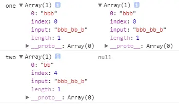 console.log('one', a1.exec(s), a2.exec(s)); // g修饰符匹配到都可以,y修饰符必须从第一个开始匹配,如果一第个不是b则会输出null