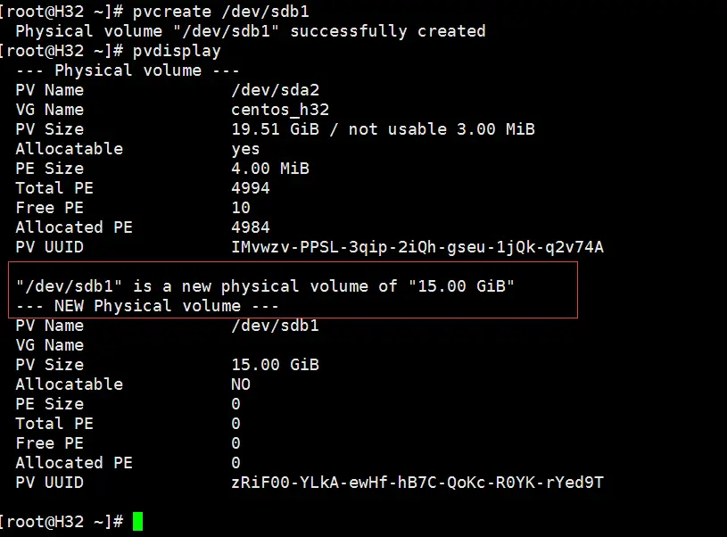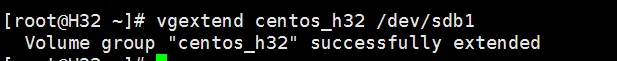 扩展卷分组,"centos_h32"是vgdisplay命令查到的卷分组名: