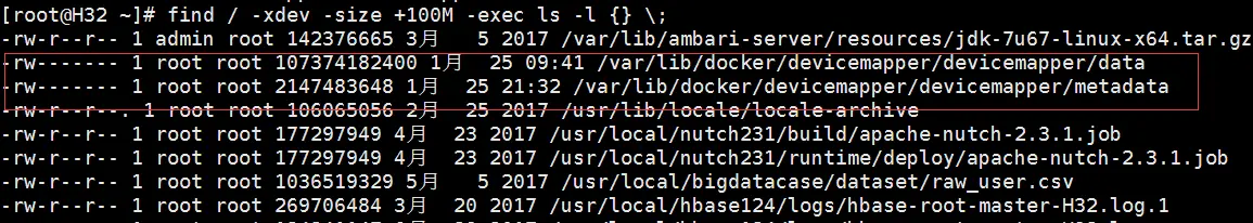 当虚拟机服务器运行Docker久了后,发现Docker的文件越来越大,某天发现此台机上的数据库访问不了了,再重启数据库等日志,提示空间不足,查看磁盘空间: root分区满载啊,前段时间还有不少空间的,查下什么大文件内容占了空间。