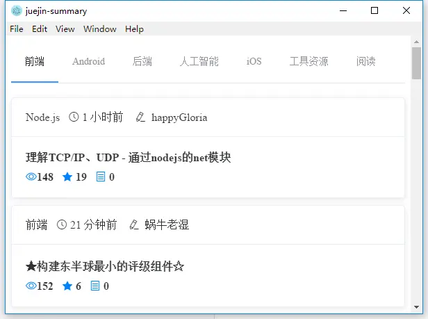 一个通过打通IPC通信方式的掘金首页概览客户端就完成了,通过npm run build就可以对这个应用进行打包了