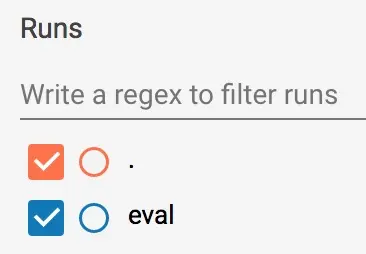 TRAIN 期间,处理批处理时会持续记录橙色值,这正是图表横跨 x 轴范围的原因。相反,EVAL 在处理所有评估步骤时只生成一个值。 根据图 7 中的提示,您可以查看并选择性地停用/启用左侧的训练和评估报告。(图 7 显示我们保留了两者的报告。)