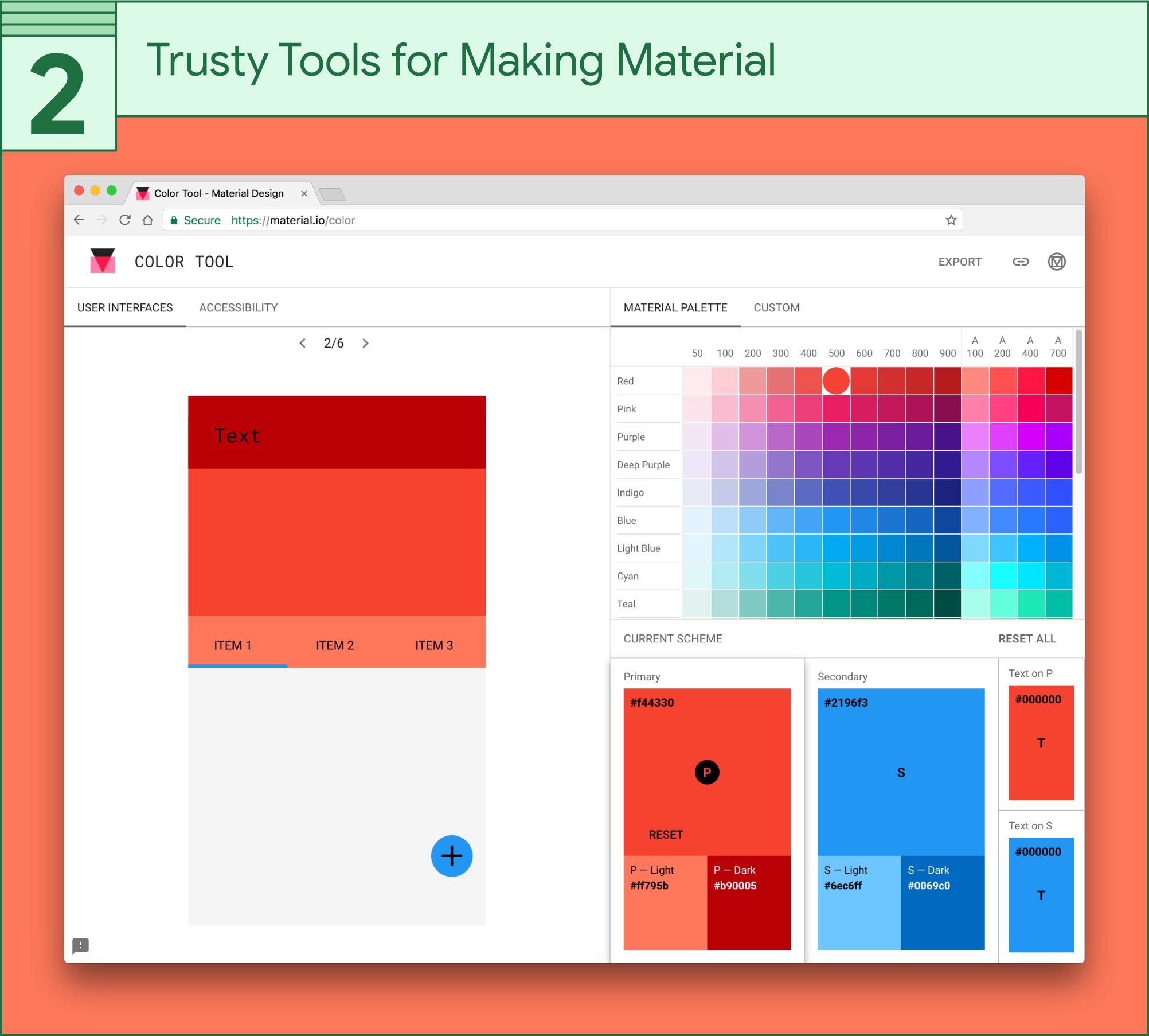 几乎每一年,设计师都会陷入颜色选择的焦虑当中。但无论是哪种情况,今年我们发布的 Material Design Color Tool (https://material.io/color) 都将让你走出颜色困境,并且在你的项目中轻松创建、共享和应用 Material 调色板。猜猜看最棒的是什么?你还可以使用该工具来测试文本和颜色组合的可读性,这意味着更多的人可以参与到你的工作中来,一起来让设计变得更好。如果你不再关注颜色,请将注意力转向 Material Components (https://material.io/components/) ——为 Android、iOS 和网页制作的一组最新的、精确到像素的组件。正是这些用起来像积木一样简单的开源工具为 Google Design 等网站提供了形式和颜色框架,并加快了开发流程。