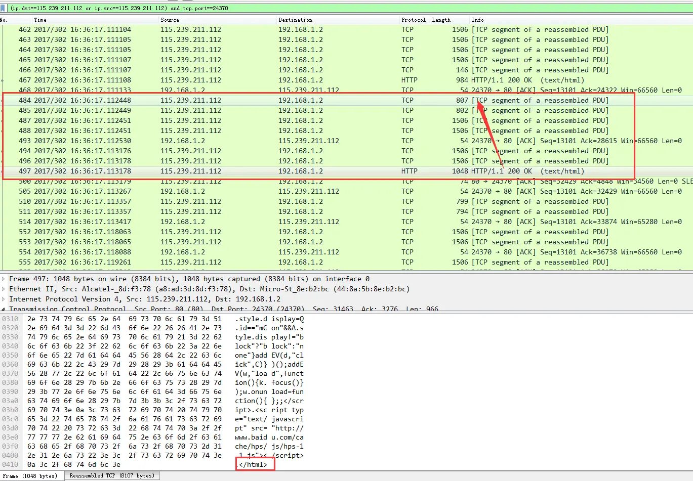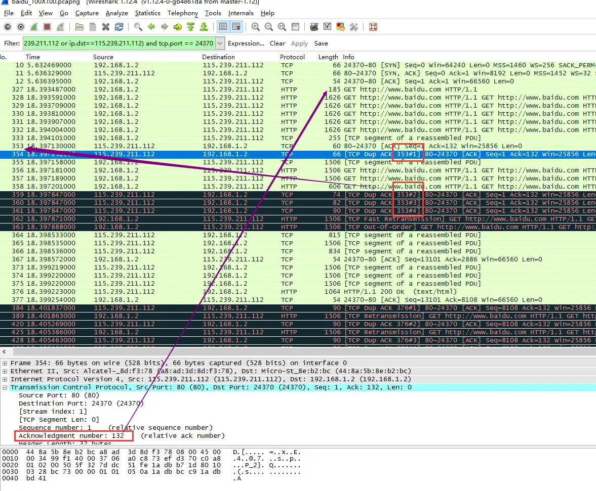 因为response本身很大,而客户端的MSS只有1460 (上面看到的1506不是超过了MSS的意思,实际该数据包只有1424,加上48个字节的TCP包头,20字节的ip包头,14字节的以太网包头一共是1506,正常tcp包头为20字节因为这个tcp包被拆包了,所以包头里多了28个字节的options)所以一个response被拆成了多个包。