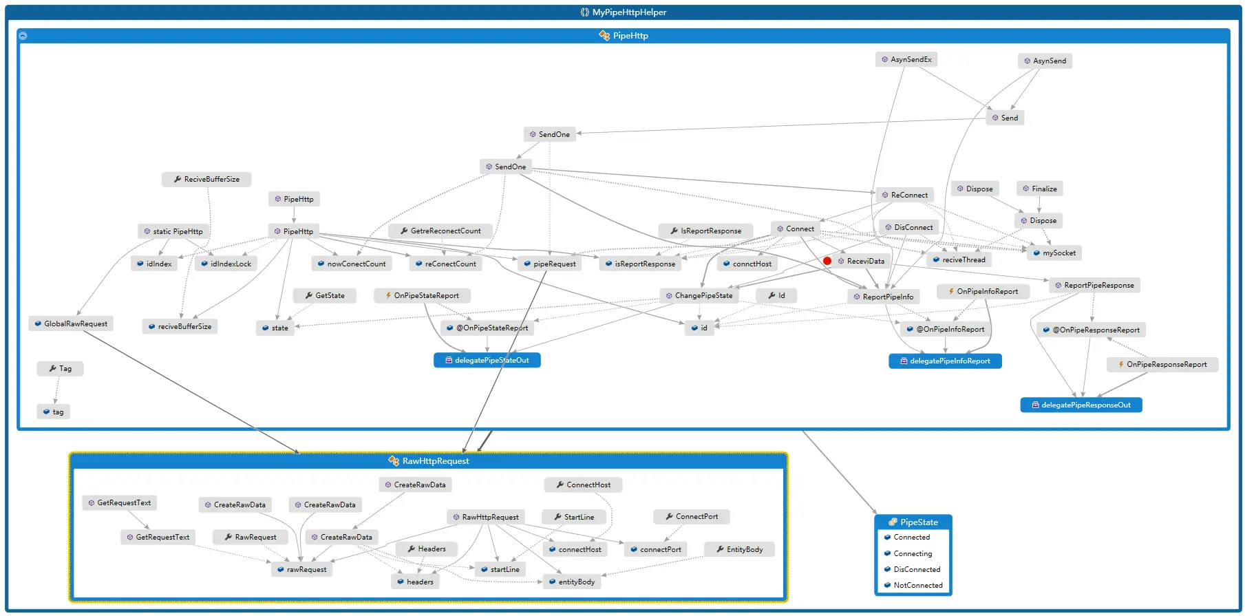 实现过程还是比较简单的可直接参看GitHub工程,MyPipeHttpHelper为实现pipe的工具类(代码中有较详细的注释),PipeHttpRuner为使用该工具类编写的测试工具