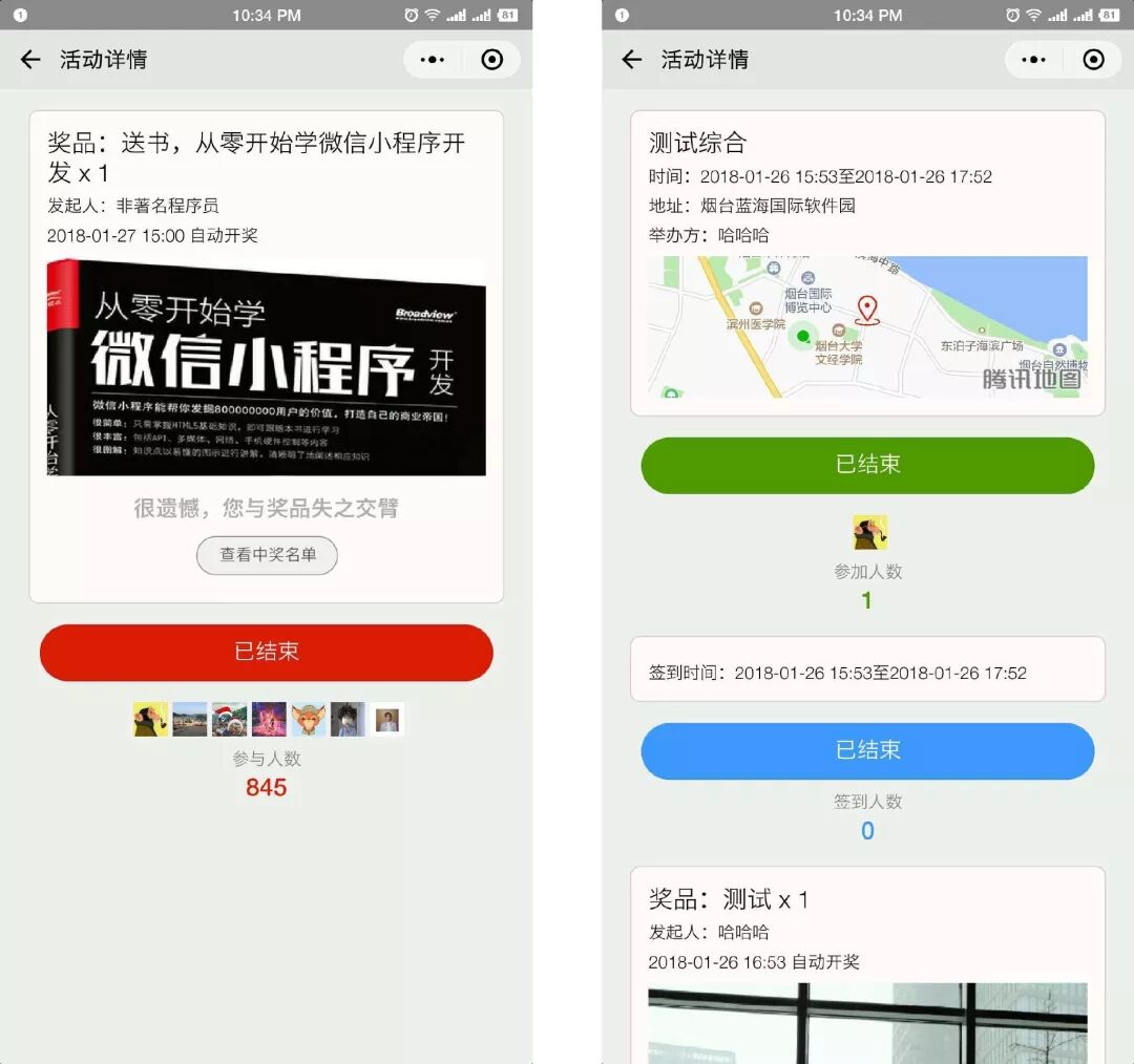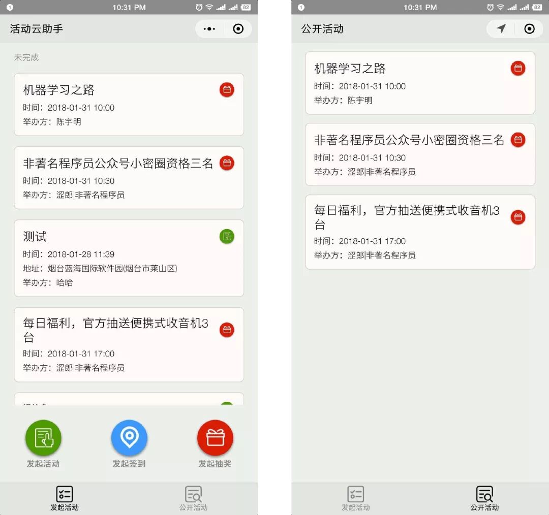 另外,我想说,我的小程序的名字叫:活动云助手。最近持续一周都会在公开列表里发送书籍奖品,随机抽送,大家有兴趣的可以去参与一下,不要白不要,万一你中奖了呢?持续近两周吧,各种书籍,从小程序,到大数据,再到 Python ,机器学习等各种技术书。好了,点击下面的小程序,赶紧去看看,去参与一下吧!!!