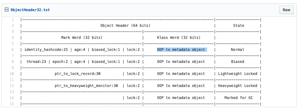 对象头:synchronized的锁状态描述在Java对象的头部。对象头中包括Mark word和Klass Word。