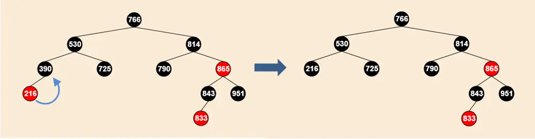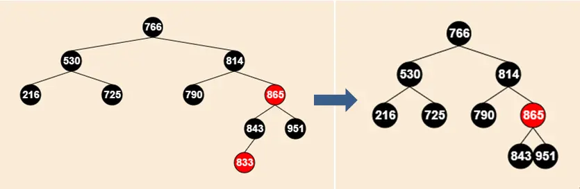 * 兄弟节点变成父节点,并且到右子树的黑色节点数量不变(由1黑1红变成1黑)