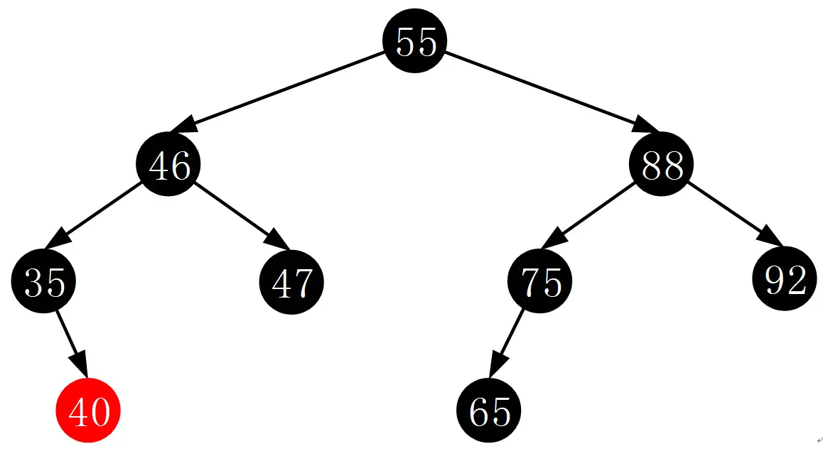 【引申规则:根据规则4和5,如果一个节点只有一个子节点,那么这个子节点肯定是红色的并且没有子节点。(如上图的22节点和65节点)】