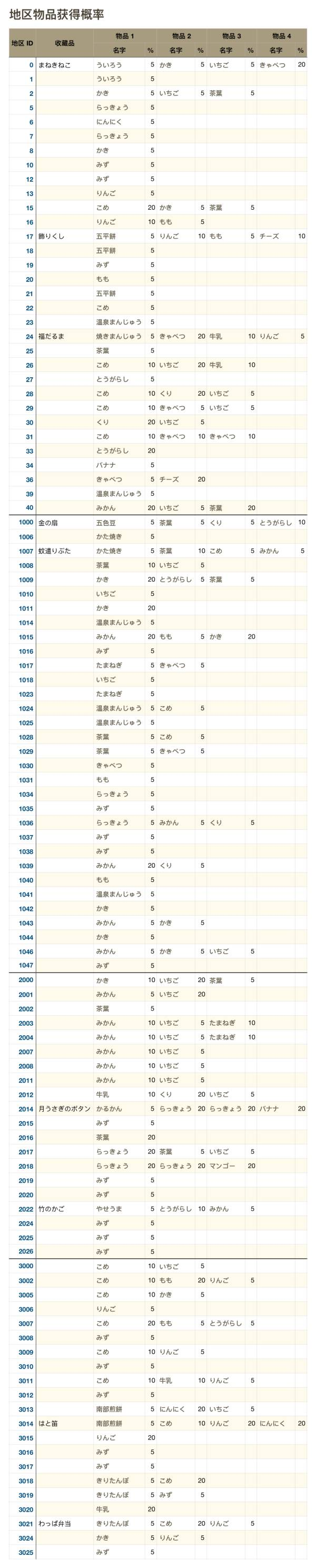 上面提到了,成功到达目的地(GOAL)的时候才会获得特产,收藏品的获得概率是 15%,其他物品的概率如下: