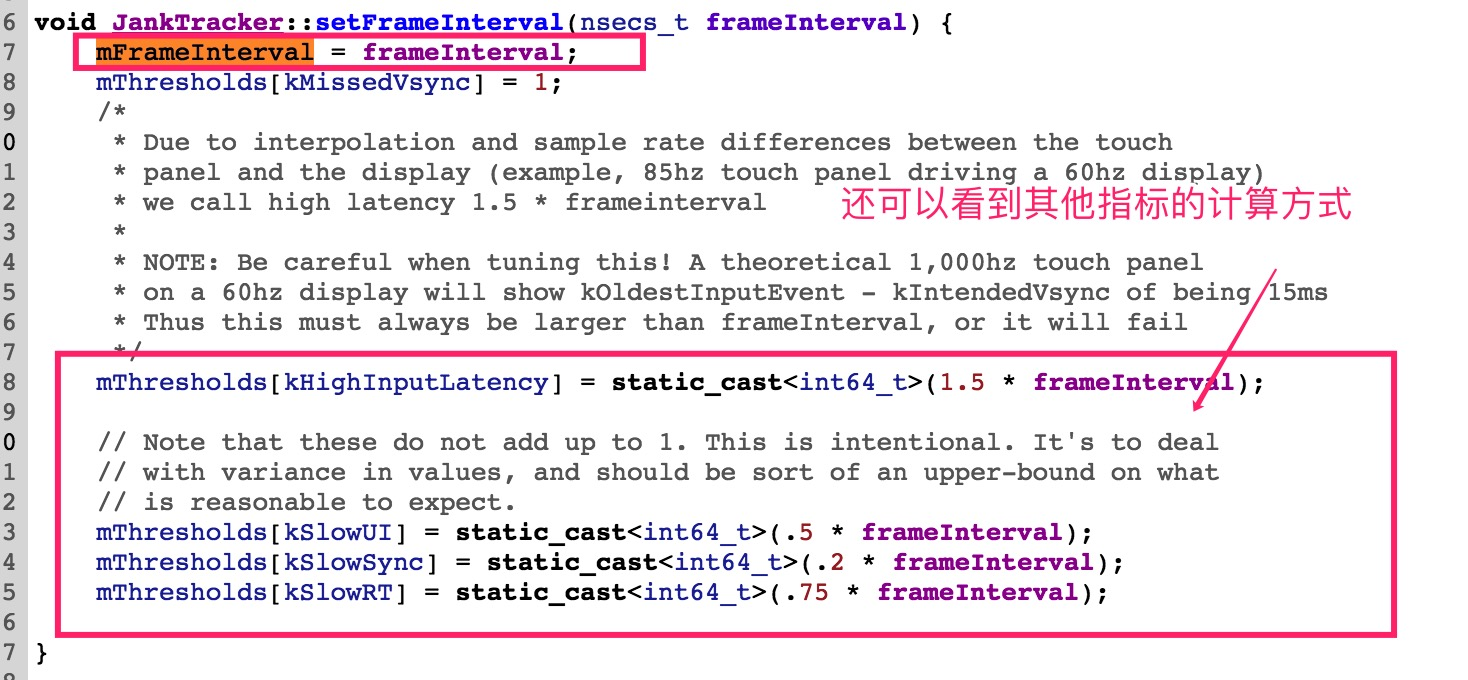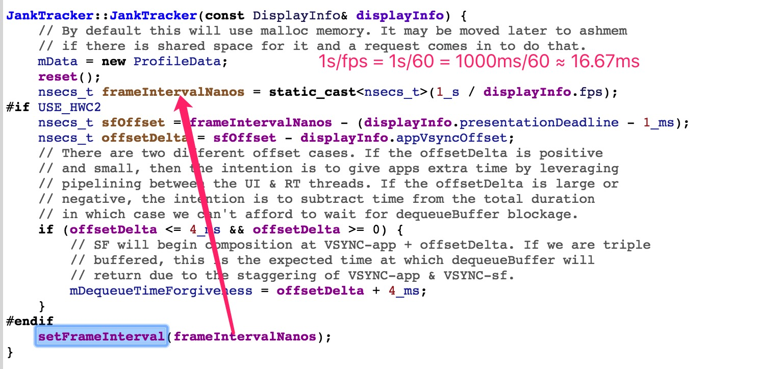 setFrameInterval()在JankTracker初始化时调用: