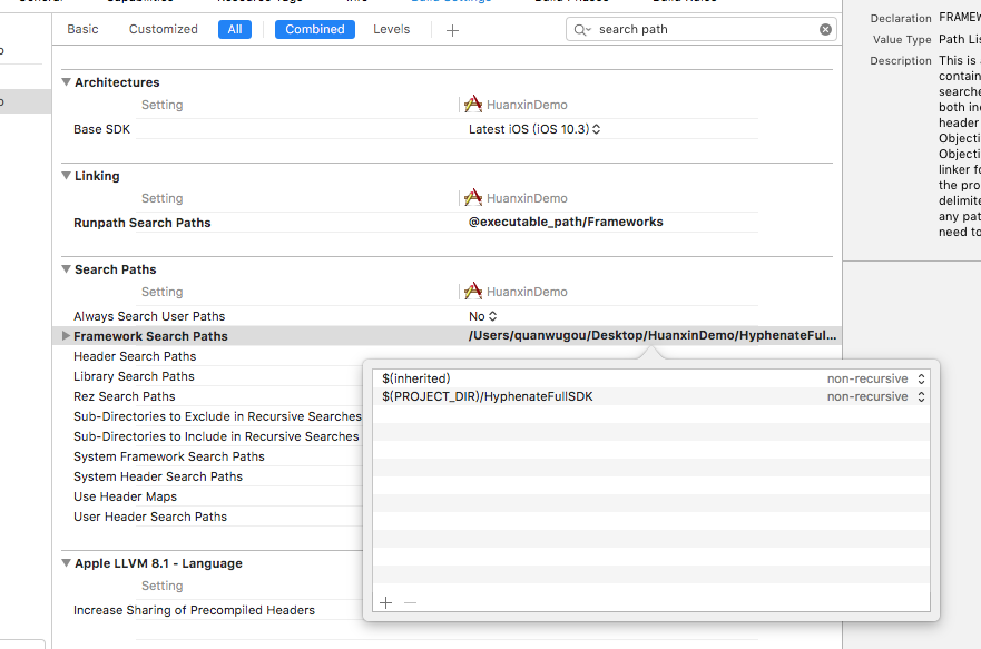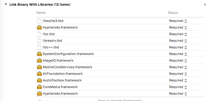 集成环信即时聊天小结(sdk_V3.3.8) 允森 2018-02-01 175 阅读1分钟 1. 新建一个空的项目,然后下载sdk文件,如下图:把其中的HyphenateFullSDK这个文件拖到工程中。2,然后添加相关的依赖库,如下图:3,当然还有如下两步操作:4,把动态库往下面2个地方添加5,然后看库的路径是否正确,如下图:完成以上步骤就可以把sdk集成成功了,就可以进行以下步骤了 :如果到这里都没有出现问题,恭喜你,集成成功了,哈哈。稍等我 集成ui的成功了再把ui的补上。