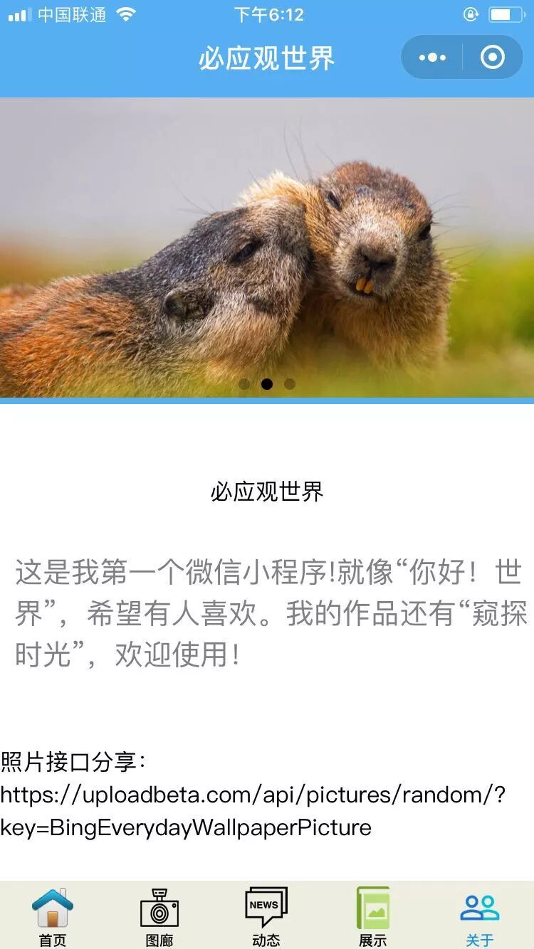 我喜欢Bing搜索,因为它有好看的界面。而它那好看的界面完全依托于界面的背景——必应每日美图。于是我就想做一个展示必应每日美图的小程序!由于必应美图涉及方方面面,于是我取名为“必应观世界”。