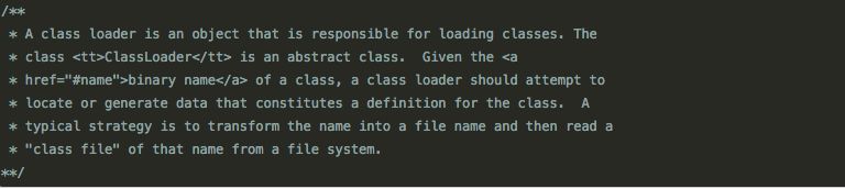 类加载器(class loader)是一个负责加载JAVA类(classes)的对象,ClassLoader类是一个抽象类,需要给出类的二进制名称,class loader尝试定位或者产生一个class的数据,一个典型的策略是把二进制名字转换成文件名然后到文件系统中找到该文件。