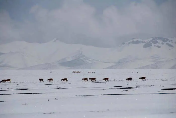羌塘高原日照强烈,天气变化无常,风力强劲,十一级大风是家常便饭。冬季极寒缺水,雨季沼泽遍布,是地球上最大的无人区之一。