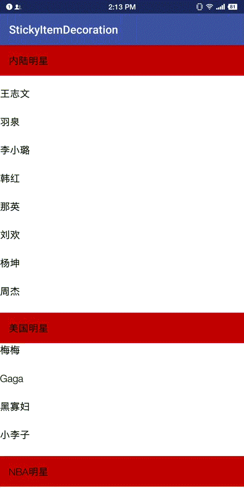 recyclerView.addItemDecoration(new StickyItemDecoration());