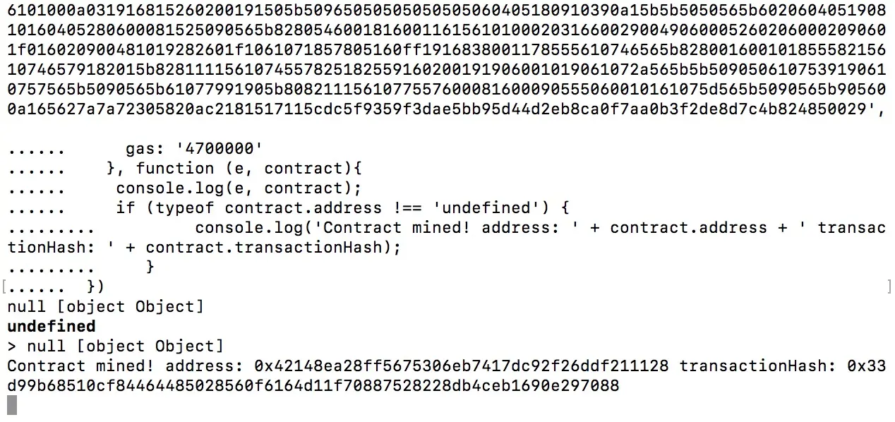 出现如下结果,合约部署成功,并得到合约地址