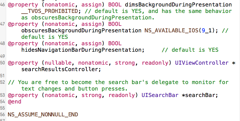 UISearchResultsUpdating -> 搜索结果更新回调的协议,实现里面的方法就能更新搜索逻辑了,这里不详细说,网上一大堆教这个的。