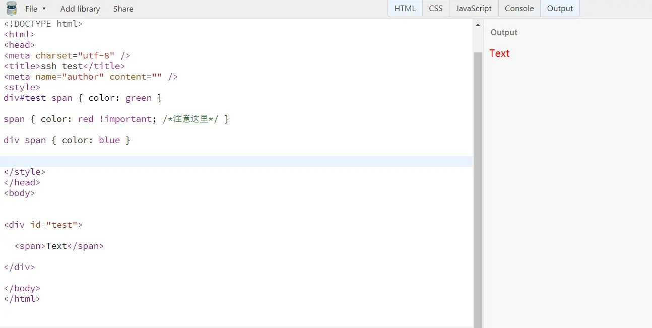 解释:以标签选择器 、标签选择器这种后代选择器的形式来定义样式,最终显示的样式是最后定义的样式。