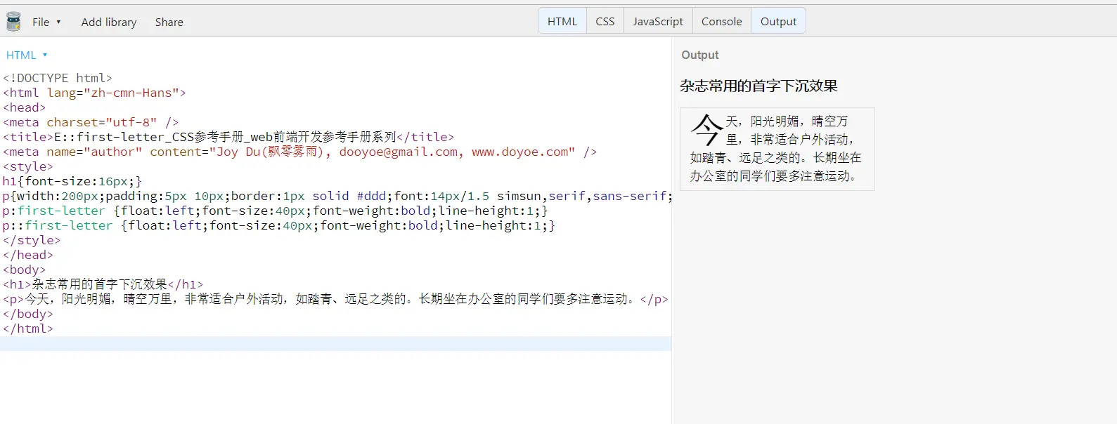 <meta name="author" content="Joy Du(飘零雾雨), dooyoe@gmail.com, www.doyoe.com" />