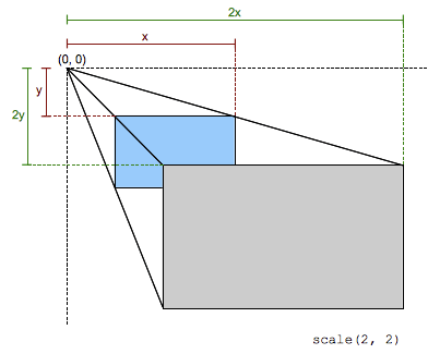 z = 0平面和用户之间的距离以便使所述3D定位的元素一些透视效果。z> 0的每个3D元素变大;,每个z <0的三维元素则变小。