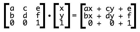 ax+cy+e为变换后的水平坐标,bx+dy+f表示变换后的垂直位置