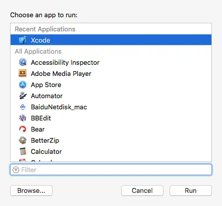 选择这个插件作为当前 Scheme,选择 Xcode 运行,然后就会弹出一个黑色的 Xcode 供你调试了。