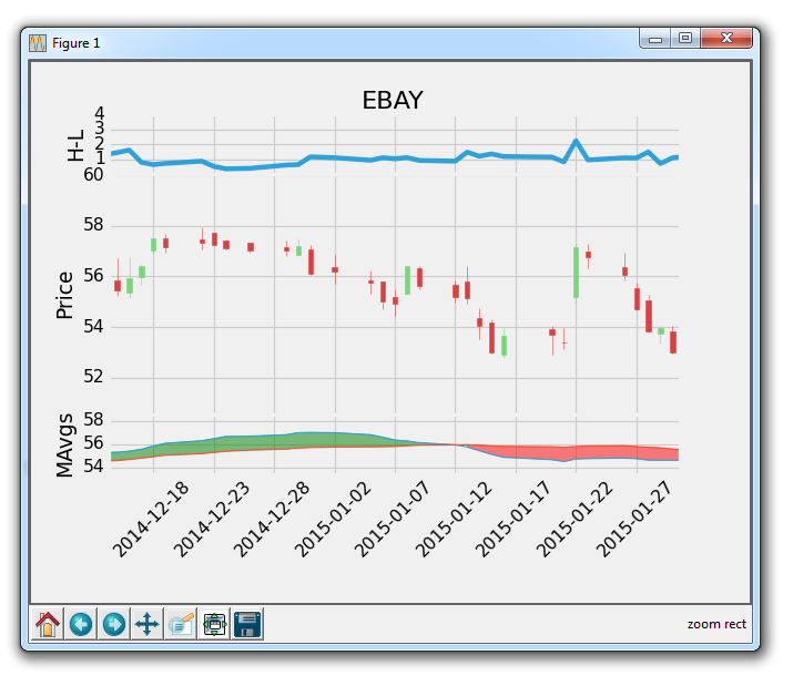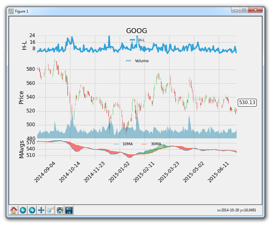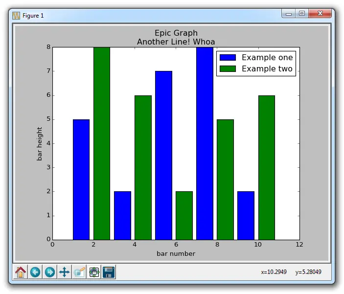 这个窗口是一个 matplotlib 窗口,它允许我们查看我们的图形,以及与它进行交互和访问。 你可以将鼠标悬停在图表上,并查看通常在右下角的坐标。 你也可以使用按钮。 它们可能在不同的位置,但在上图中,这些按钮在左下角。