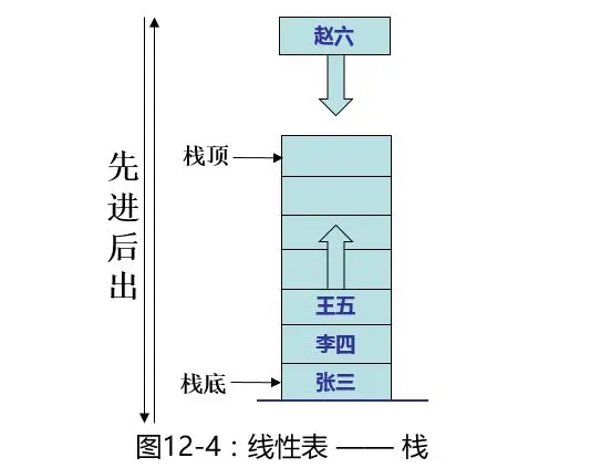 如上图,把赵六放入到栈中叫压栈,不放入赵六,直接取出(删除)王五的过程叫出栈,只能从栈顶放入和删除元素。本文第一张图里的Stack就是栈在Java中的实现。举个例子,最后洗好的盘子都是叠放在最上面的,但每次用的时候都是从最上面拿,最先洗好的盘子反而不容易用到。